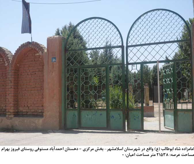 آستان امامزاده ابوطالب (علیه السلام) در شمال اسلامشهر و شمال به بزرگراه تهران ـ ساوه، و از شرق به روستای شمس آباد، از غرب به روستاهای حسن آباد و رضی آباد و یوسف آباد، و از جنوب به روستای گلدسته محدود می شود. مزار امامزاده در میان بوستانی مصفا با درختانی تنومند و قدیمی، و در قبرستانی یک هکتاری واقع شده است که در حال حاضر فاقد بنا می باشد، و سابقه ی قبرهای آن گورستان به بیش از صد سال پیش می رسد، و در آن میان مزار پنج شهید به معنویت گورستان افزوده استف پنج شهید دفاع مقدس در سال های ۶۱ و ۶۲ و ۶۵، ۱۳۶۶ می باشند. سنگ قبری سیمنی در ابعاد ۲۶×۱۱۳×۱۶۳سانتی متر (بدون گنبد و ضریح و صندوق و فاقد چاردیواری و سقف) در میان قبرستان روستا به چشم می خورد که به امامزاده جعفر ابوطالب مسما می باشد. مساحت اعیان آن ۲۱۵۳۹ متر مربع می باشد.